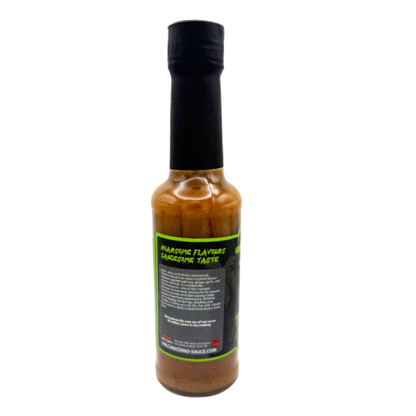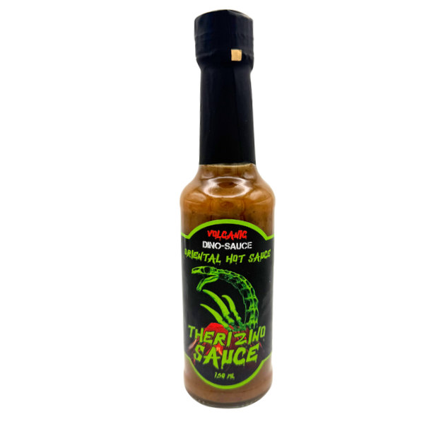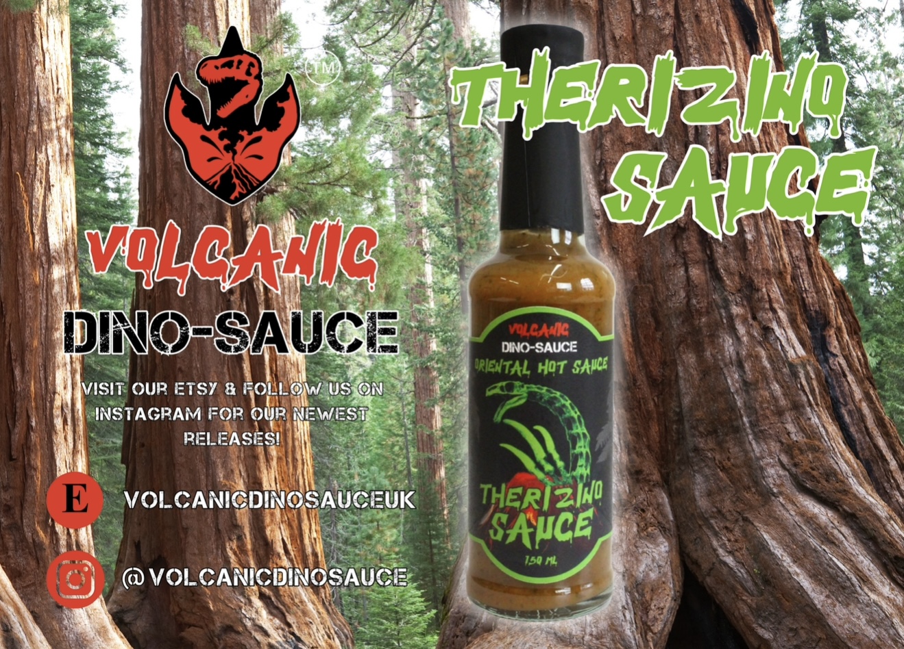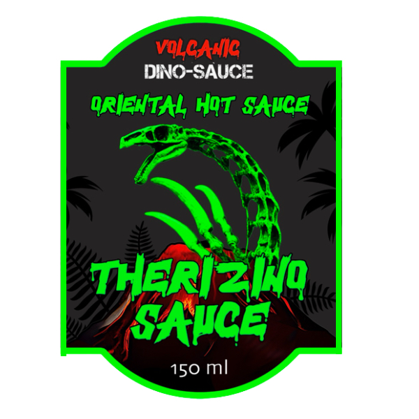 Exotic, spicy, and totally unexpected, Therzino-Sauce is an Asian-inspired flavor explosion packed with soy, ginger, garlic, and a fierce chilli kick. It’s named after Therizinosaurus – one of the strangest dinosaurs to ever exist, famous for its massive 3-foot-long claws and plant-eating habits despite its terrifying appearance. Whether you’re dipping dumplings, drizzling over noodles, or firing up a stir-fry, this wild, clawed flavor storm is ready to grab hold of your taste buds.