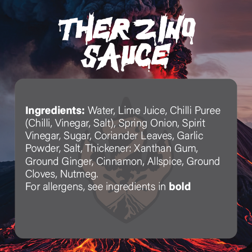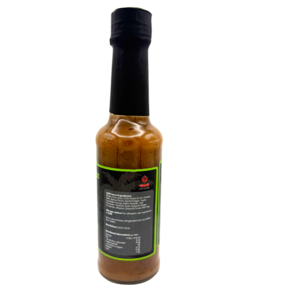 Ingredients: Water, Lime Juice, Chilli Puree (Chilli, Vinegar, Salt), Spring Onion, Spirit Vinegar, Sugar, Coriander Leaves, Garlic Powder, Salt, Thickener: Xanthan Gum, Ground Ginger, Cinnamon, Allspice, Ground Cloves, Nutmeg.