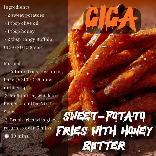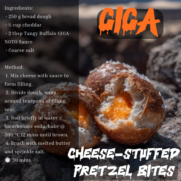 The Giant deserves a giant flavour. Our Tangy Buffalo is a classic flavour made for everything! Just like a Giganotosaurus hunted pretty much anything, The sharp, tangy kick delivers the kind of bite you’d expect from a “giant southern lizard,” making it the perfect sauce for a platter of wings, cauliflower bites or smashing on everything!